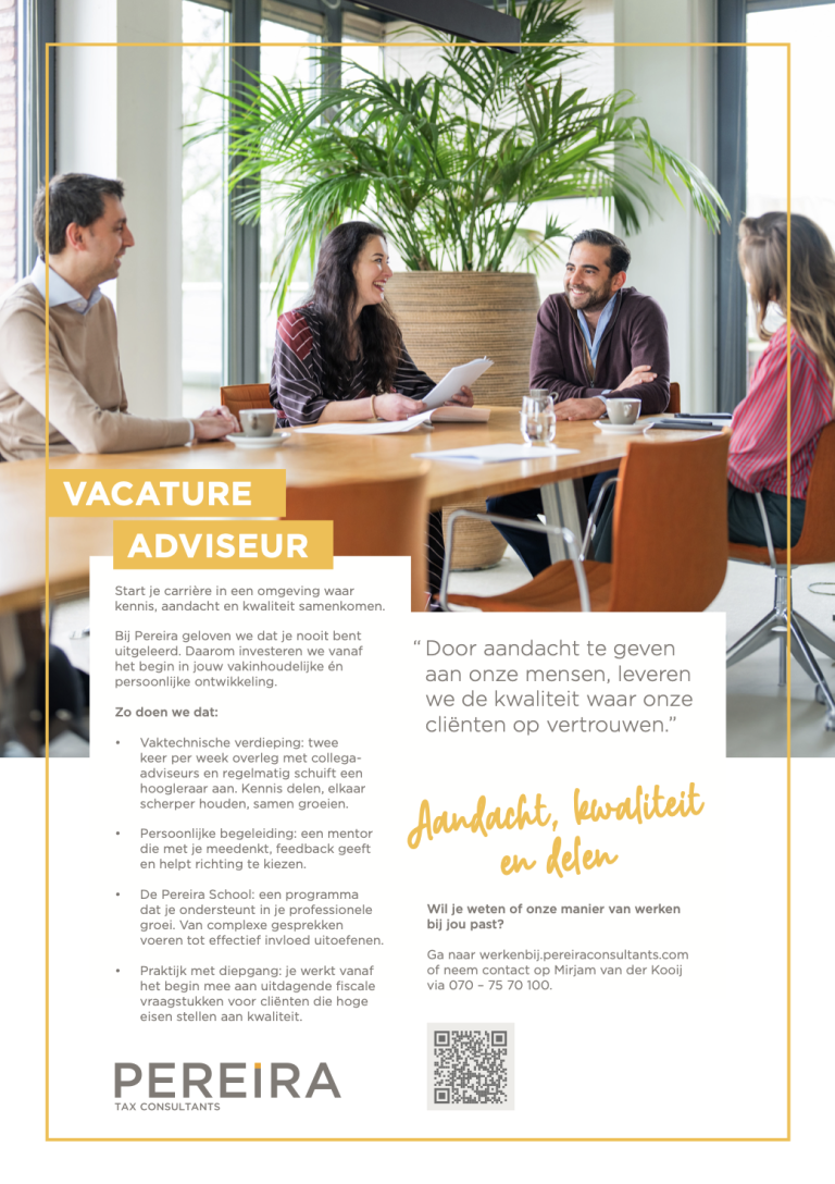 Ga naar werkenbij.pereiraconsultants.com of neem contact op Mirjam van der Kooij via 070 – 75 70 100.