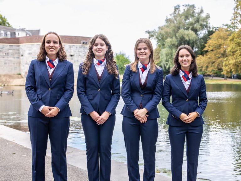 V.l.n.r. Iris Debets (Commissaris Intern / Vice-voorzitter), Bregje Carol (Secretaris), Lynn den Ridder (Voorzitter), Maike Mestrom (Penningmeester)