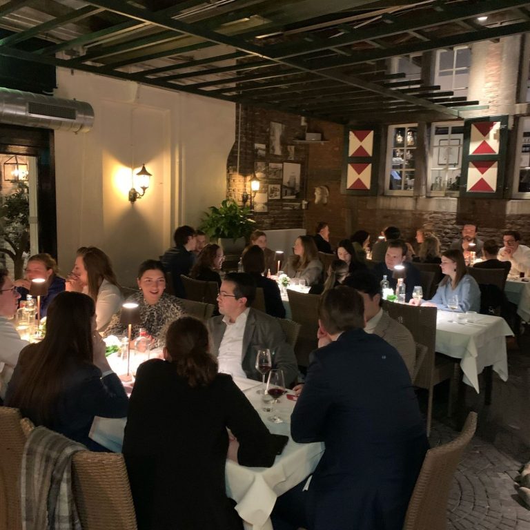 De internationale commissie ondersteunt internationale studenten met informatie over de studie en de stad, zodat zij zich snel thuis kunnen voelen en een soepel studiejaar tegemoetgaan. Verder organiseert zij aan het begin van het jaar het evenement ‘Meeting Maastricht’, waarbij een groep van internationale studenten een rondleiding krijgt door de stad en kennis maakt met de vele kroegen die Maastricht rijk is. Daarnaast organiseert de commissie ieder jaar een trip naar Luxemburg, waar de studenten kennis kunnen maken met verschillende potentiële toekomstige werkgevers (zie foto). De internationale commissie is bovendien verantwoordelijk voor de International Job Fair, die plaats zal vinden op vrijdag 6 februari 2026.