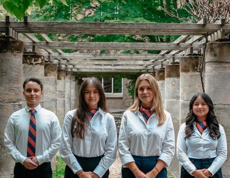 V.l.n.r. Mohammed Benchallal (penningmeester), Sanne van Ooteghem (vice-voorzitter), Benthe Spronck (voorzitter) en Amber Willems (secretaris)
